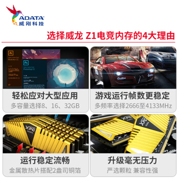 威刚(ADATA)DDR4 3200 16GB (8GBx2)套装 台式机内存 XPG-威龙Z1(金色) |
