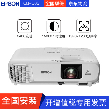 爱普生(EPSON)投影仪 高清家用 办公便携投影机 CB-U05(3400流明 超高清) 标配+吊架+英微100英寸幕布+安装 |