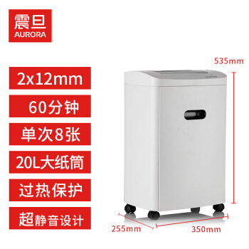 震旦AURORA 碎纸机办公室家用电动文件粉碎机办公商用大功率 5级保密 8张60分钟20L碎CD碎卡静音 AS0860CD |