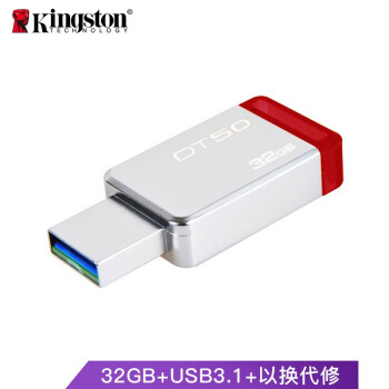 金士顿(Kingston)32GB USB3.1 U盘 DT50 红色 金属外壳 无盖设计 |