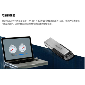 闪迪(SanDisk)64GB USB3.0 U盘 CZ73酷铄 银色 读速150MB/s 金属外壳 内含安全加密软件 |