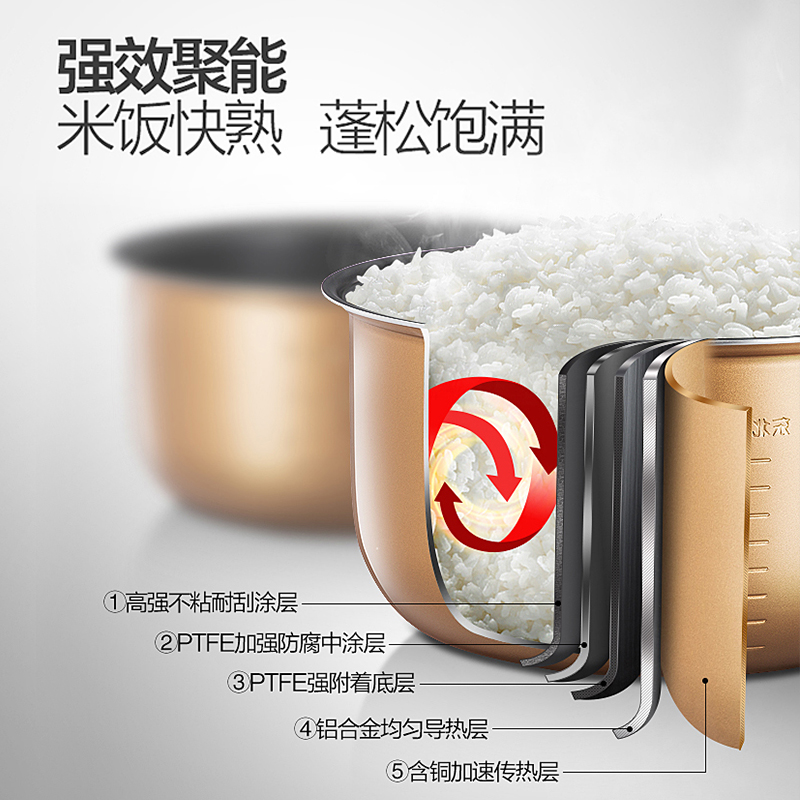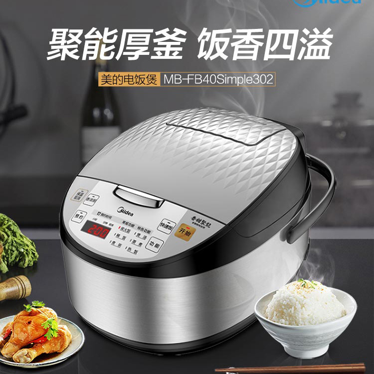 美的(Midea)电饭煲家用4L热饭烧汤烧粥智能【拉丝金属/银色】 |