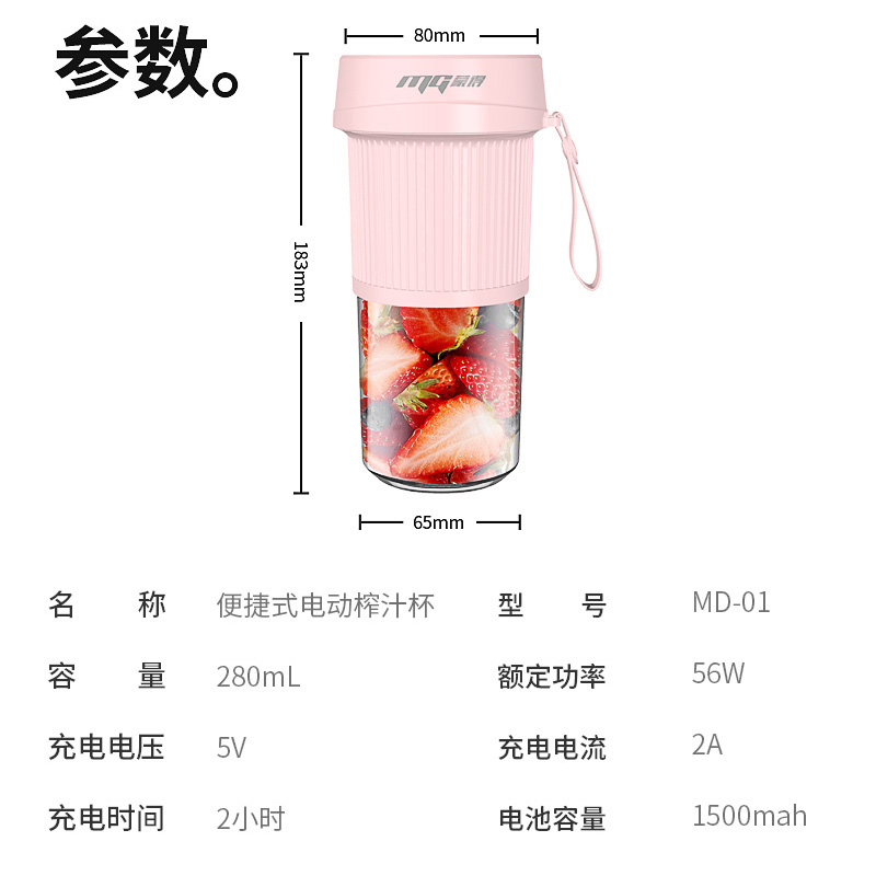 无线储电式多功能便捷榨汁机【PP/粉色】 |