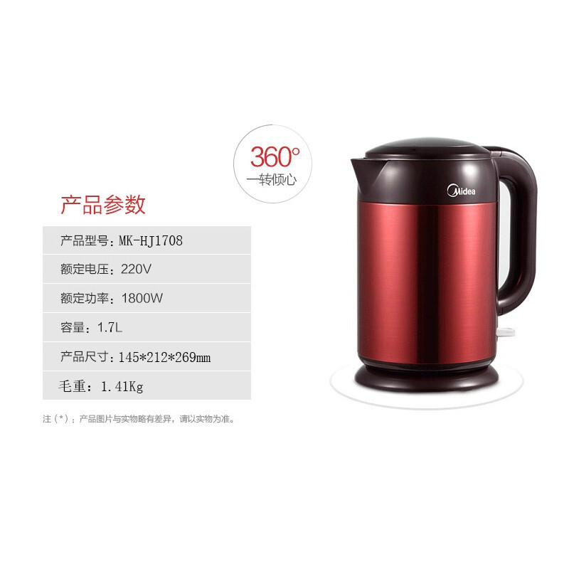 HJ1708家用双层防烫电热水壶【ABS+PC/红色】 |