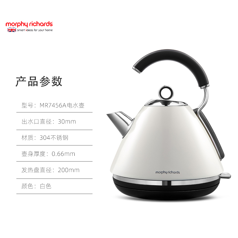 摩飞电水壶MR7456A家用英伦品质电热水壶【不锈钢/白色】 |