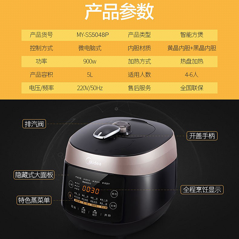 美的MY-SS5048P双胆智能电压力锅【ABS材质、电子元器件/褐色】 |
