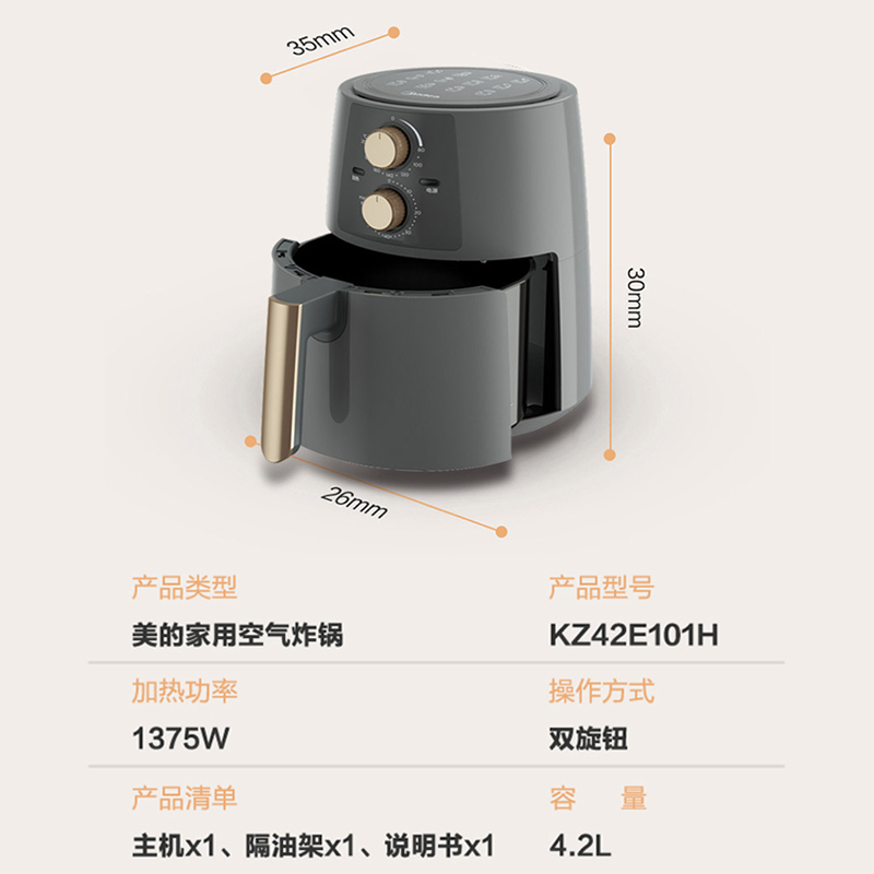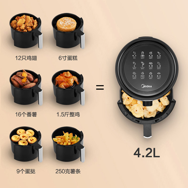 美的(Midea)空气炸锅4.2L家用煎炸锅无油【其他/灰色】 |