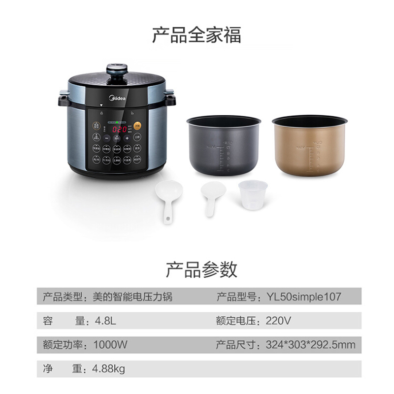 美的(Midea)电压力锅5升双胆智能预约双内胆【铝合金内胆/银色】 |