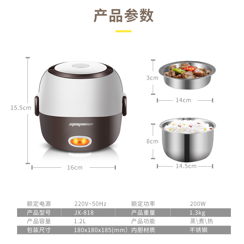 蒙得宿舍便捷式双层上蒸下煮电热饭盒【不锈钢/白色】 |