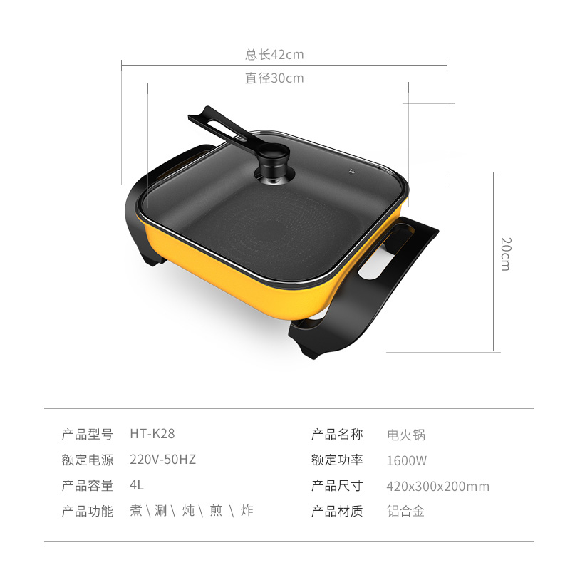HT-K28多档控大型电火锅【铝合金/黄色】 |