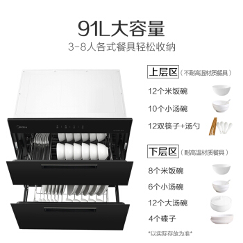 美的(Midea)消毒柜家用 碗柜 碗筷 紫外线 91L 母婴消毒 二星级 嵌入式 100Q15 |