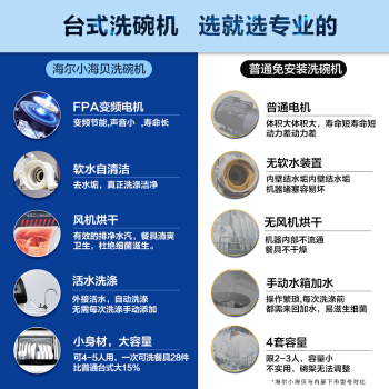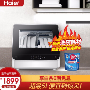 海尔(Haier)小海贝台式除菌洗碗机6套 变频直驱电机 离子软水 加强烘干 易安装台式 HTAW50STGB |