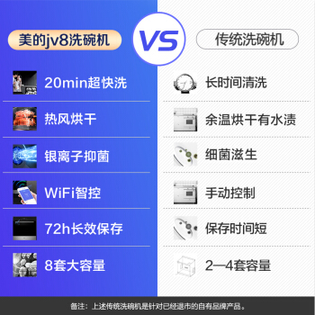 美的(Midea)8套 嵌入式 家用洗碗机 热风烘干 WIFI全智能 一键自清洁 20min超快洗 全自动刷碗机JV8 |