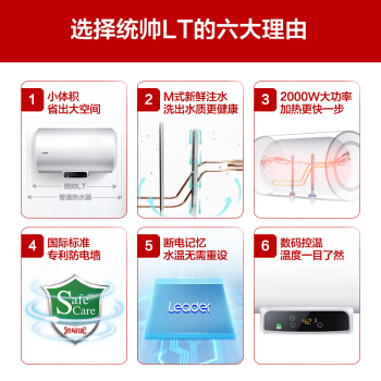 统帅(Leader)海尔出品 60升电热水器 数码控温 新鲜活水 专利防电墙 金刚三层胆 8年包修小尺寸 LES60H-LT |