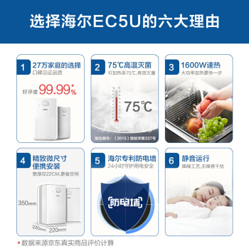 海尔(Haier)5升家用上出水小厨宝1600W厨房速热小型电热水器专利防电墙EC5U |