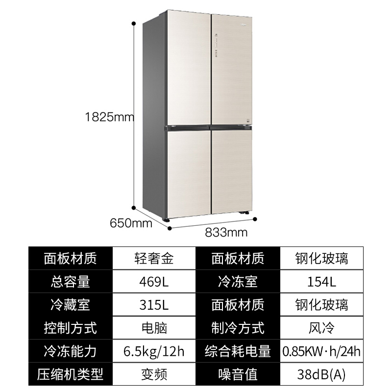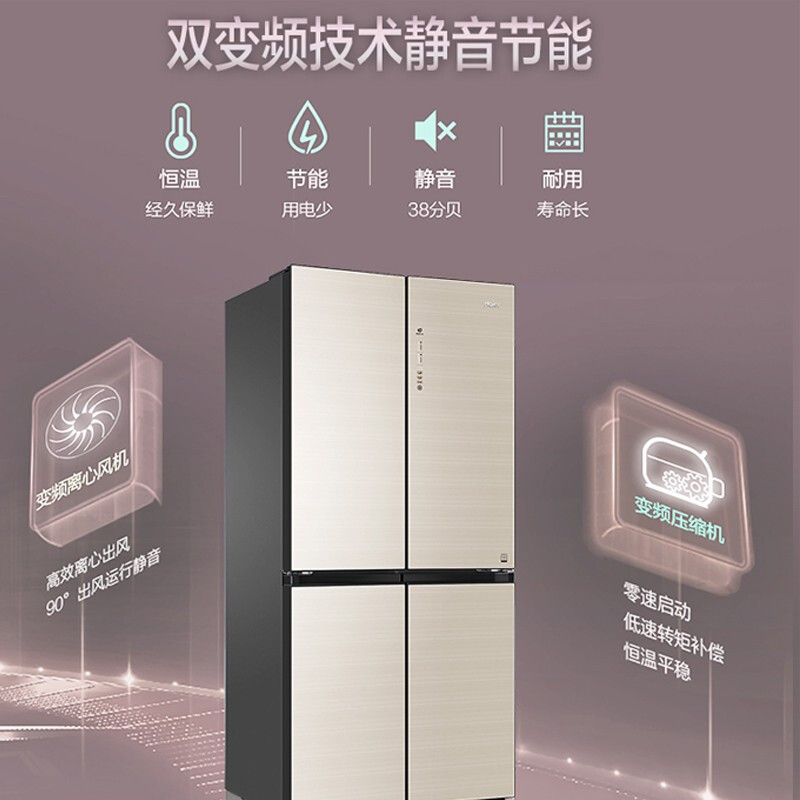 海尔冰箱十字对开门四开门风冷无霜玻璃面板双变频BCD-469WDCO【彩晶玻璃/布朗灰】 |