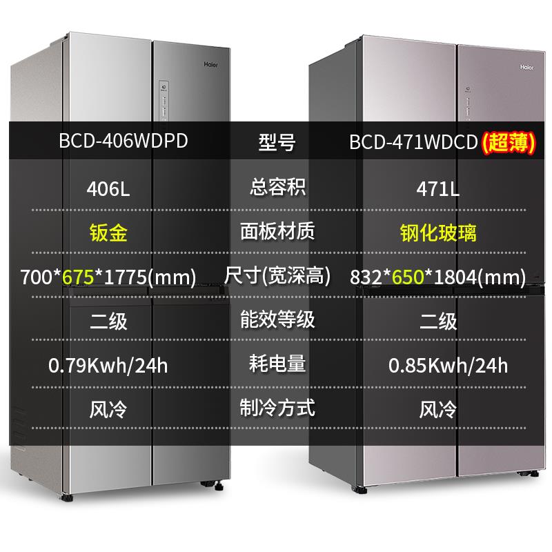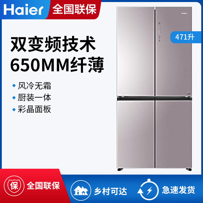 Haier/海尔 BCD-471WDCD十字对开四门变频风冷大容量超薄冰箱家用【彩晶玻璃/粉晶纯色】 |