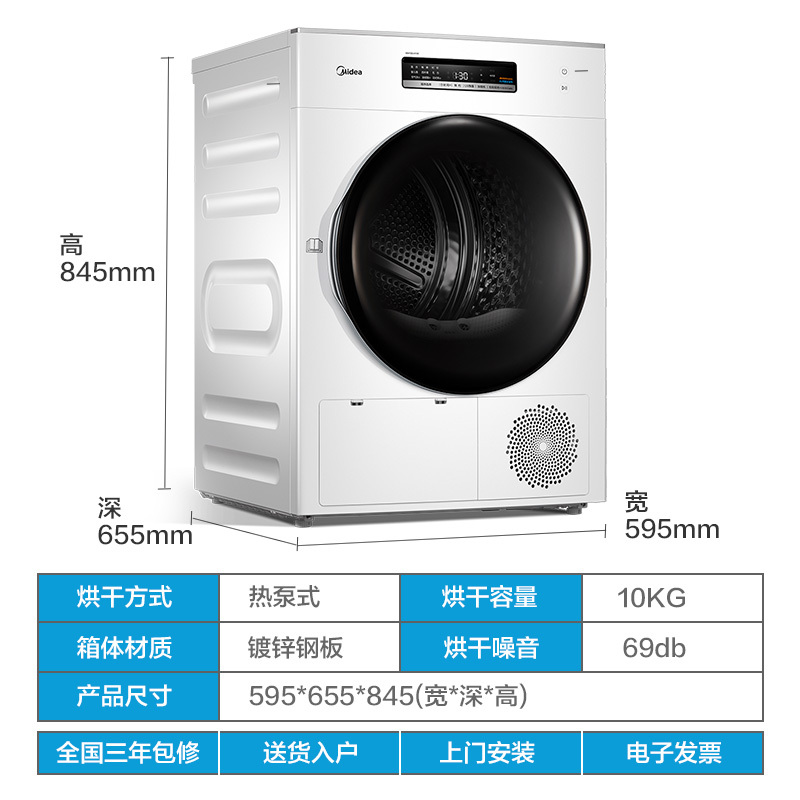 美的(Midea)MH100-H1W 10公斤大容量智能热泵烘干机 健康柔烘 除螨又除菌【洗衣机/白色】 |