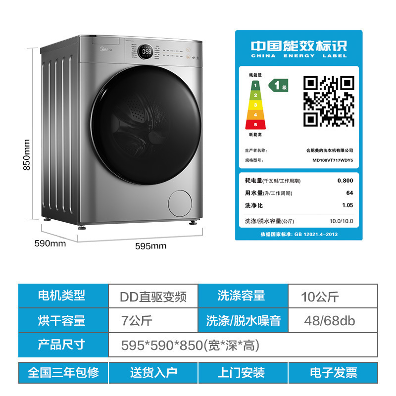 美的(Midea)MD100VT717WDY510公斤全自动洗衣机直驱变频滚筒洗衣机干衣机【洗衣机/灰色】 |