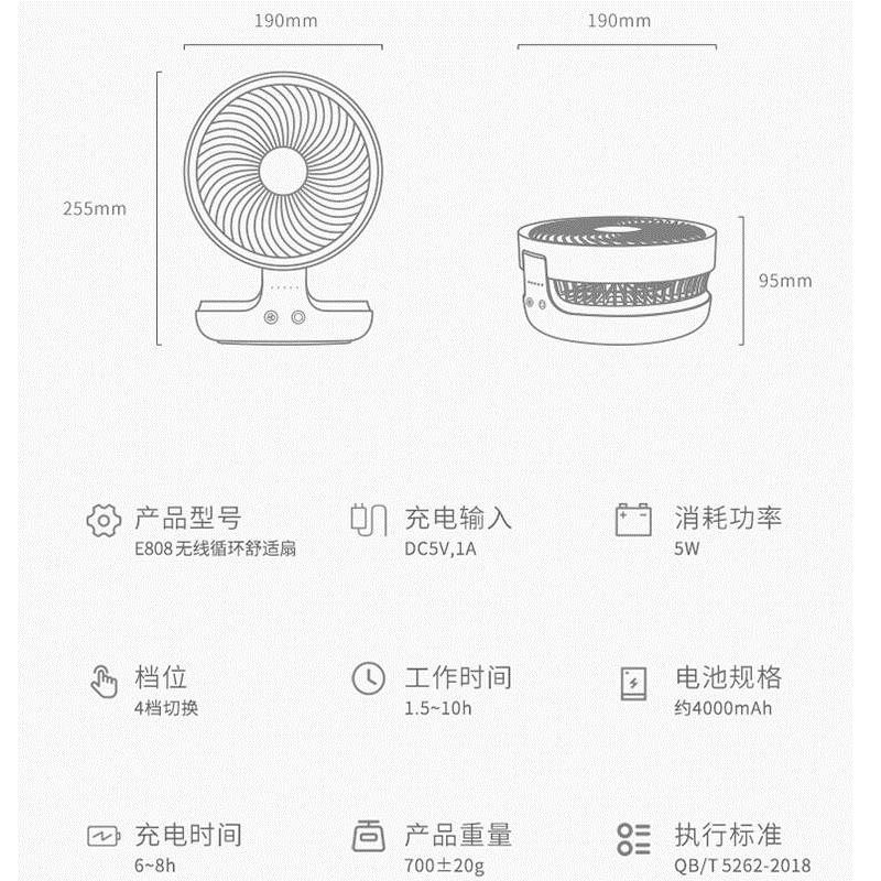 爱登(edon)风扇e808悬浮空气循环扇无线桌面家用小风扇 【充电款】悬浮摇头+4档风力+夜间呼吸灯【ABS材质/简约白】 |