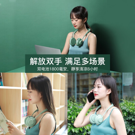 新款 挂脖风扇无叶USB超静音电风扇【ABS/牛油绿】 |