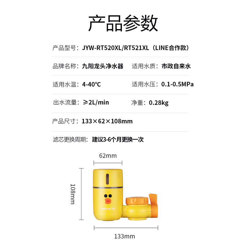 九阳Linefriends联名款龙头净水器JYW-RT520XL黄色莎莉鸡款【椰壳活性炭/黄色】 |