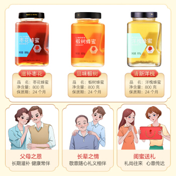 北京同仁堂蜂蜜礼盒 800g/瓶*3瓶 洋槐蜂蜜 枣花蜂蜜 荆条蜂蜜 瓶装 |