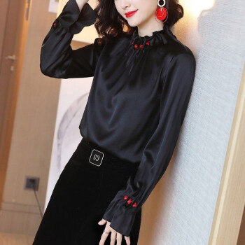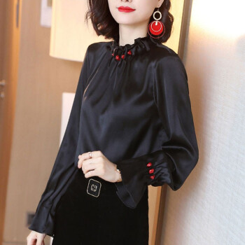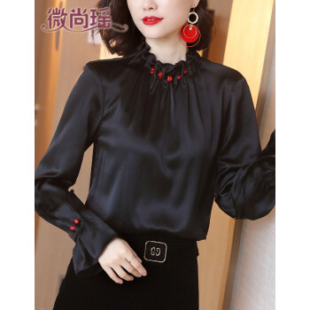 微尚瑶衬衫女秋季新款设计感小众立领钉珠宽松黑色上衣女时尚百搭气质长袖衬衣女6832 黑色 请拍正确尺码 |