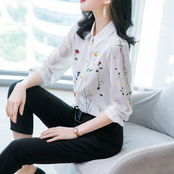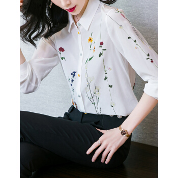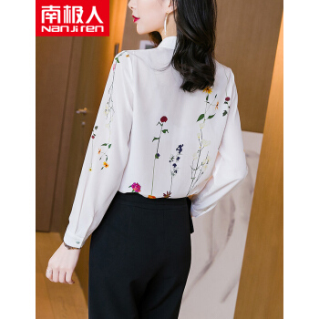 南极人 雪纺衬衫女长袖夏季新款时尚洋气女装雪纺小衫浪漫印花宽松小衫气质上衣潮 N4-NRA52-033-白色 M |