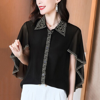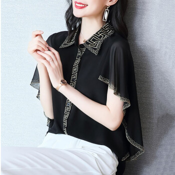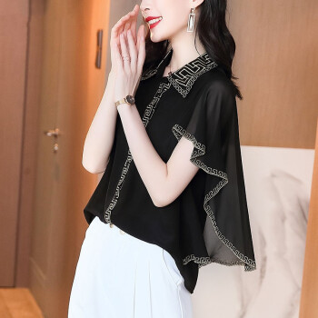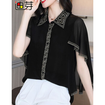 迪芽衬衫女夏季新品韩版潮流黑色显瘦POLO领衬衣百搭薄款气质优雅简约T恤衫7327 黑色 请拍正确尺码 |