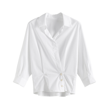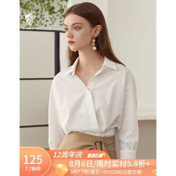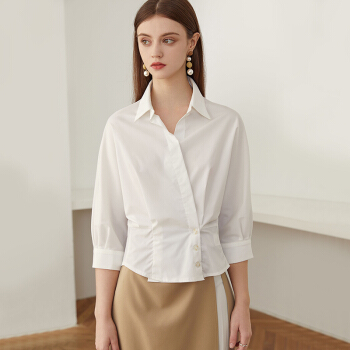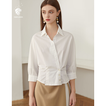 范思蓝恩 夏新款气质领上衣连袖衬衫女七分袖衬衣 白色 M |