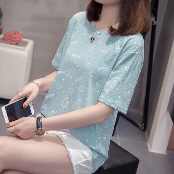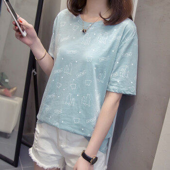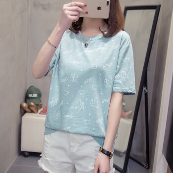 莺飞雪短袖t恤女夏季新款韩版宽松休闲学生大码女装显瘦百搭上衣打底衫女 浅蓝色8862 XXL(建议135-150斤) |