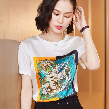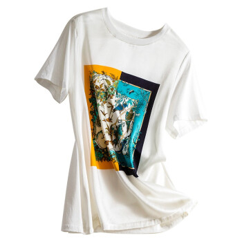若玲珑短袖t恤女春夏新款女装印花韩版宽松上衣女学生白搭时尚衣服女大码女装夏 白色 M(建议95-105斤) |