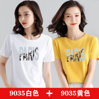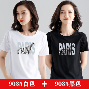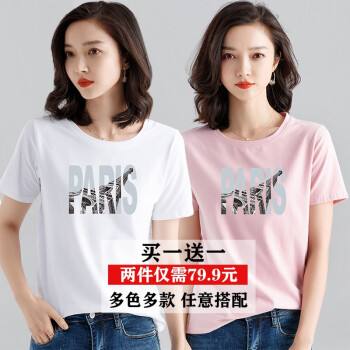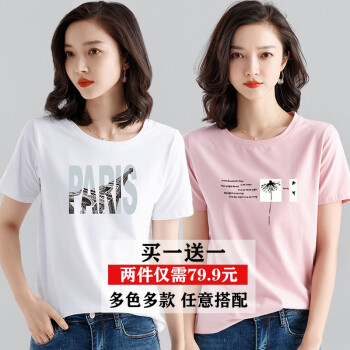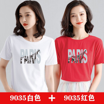 【两件装】知语者女装短袖t恤女宽松体恤大码显瘦上衣夏季新款百搭韩版印花时尚纯色棉质打底T恤女 9035白色+9048粉色 L《105-115斤》 |