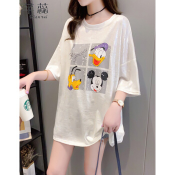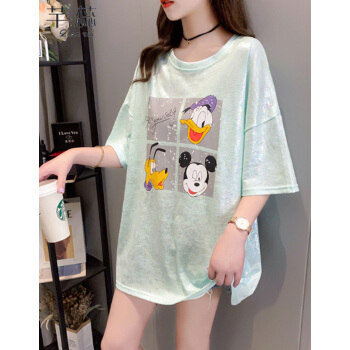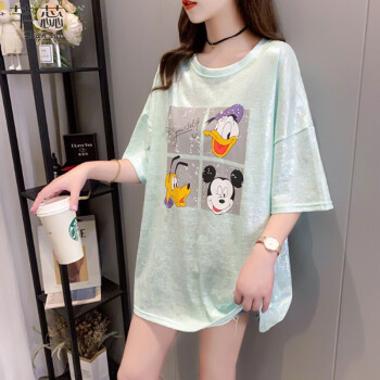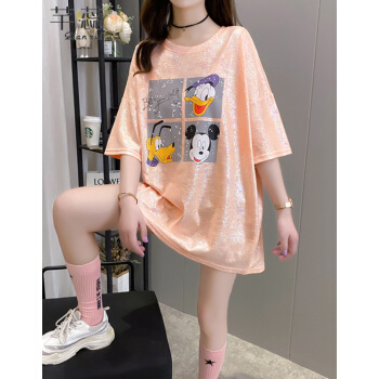 芊蕊t恤女短袖夏季新款韩版宽松印花字母中长款大码女装胖MM半袖打底上衣服 2389杏色 M |