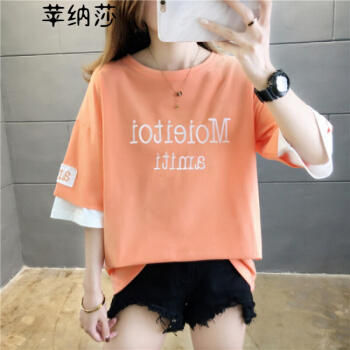 苹纳莎 短袖T恤女夏季新款时尚韩版宽松学生百搭时尚上衣打底潮 桔色 L (建议100斤-115斤) |