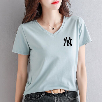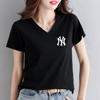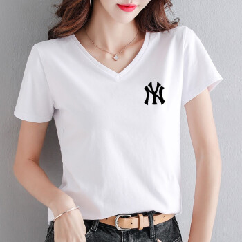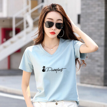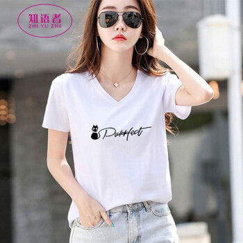 知语者女装短袖t恤女宽松体恤大码显瘦上衣夏季新款百搭韩版V领印花时尚纯色棉质t桖打底T恤女 8865V领白色 L《105-115斤》 |