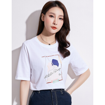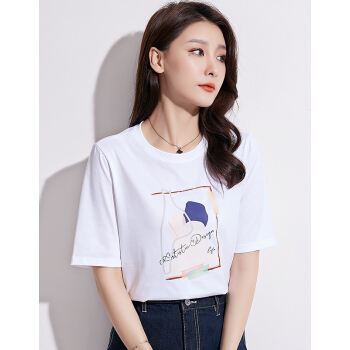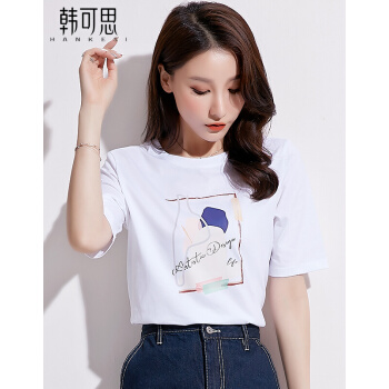 韩可思 纯棉短袖t恤女春夏装新款韩版时尚宽松百搭休闲女装学生上衣女打底衫 XX2058 典雅白 请拍正确尺码 |