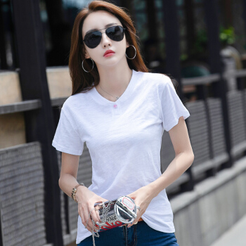 红粉宣言夏季新款百搭宽松竹节棉大码T恤女短袖 蓝色 L |