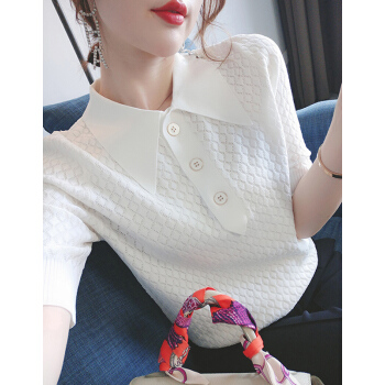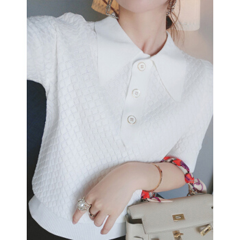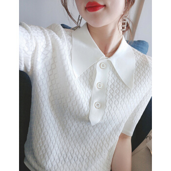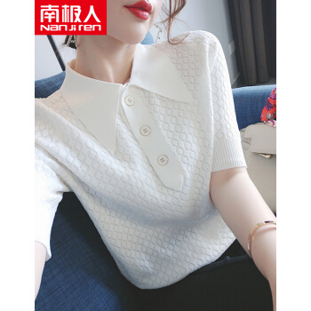 南极人 短袖t恤女夏季新款潮流时尚洋气百搭小香风菱格镂空花纹POLO衫上衣潮 N2-GT131-6660-白色 M |