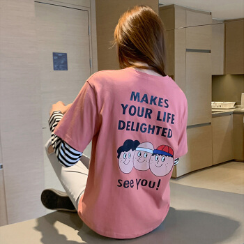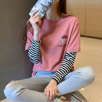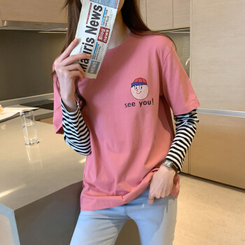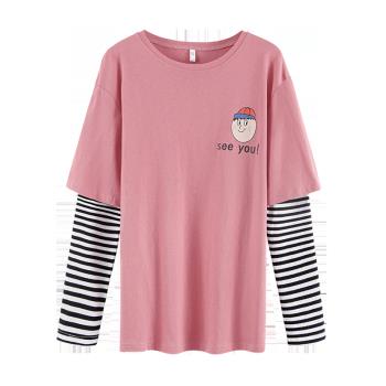 纯棉长袖t恤女春秋新款韩版学生百搭宽松上衣打底衫 7059粉 S 65-70斤 |