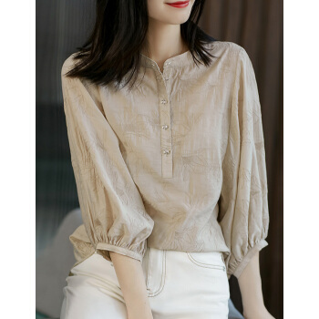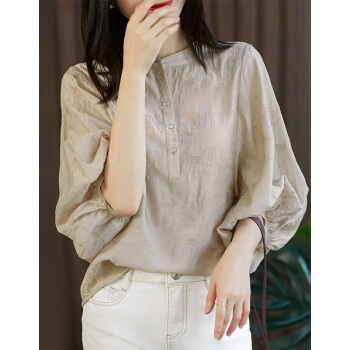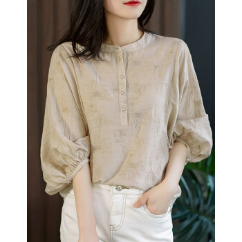 南极人 短袖t恤女士夏季新款圆领宽松绣花遮肚减龄灯笼袖复古简约小衫半袖体恤上衣 N5-GT249-631-杏色 M |