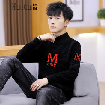 回图秋冬新款半高领毛衣男韩版潮流中领针织衫外套毛衫 深灰色 XL |