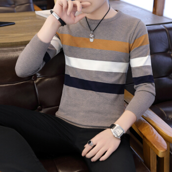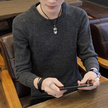 圆领毛衣男士针织衫秋冬季休闲有加绒加厚新款时尚修身男士套头打底毛线衣韩版潮流上衣服帅气青年男装 不加绒67090红线-黑色 XL |
