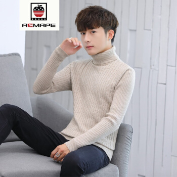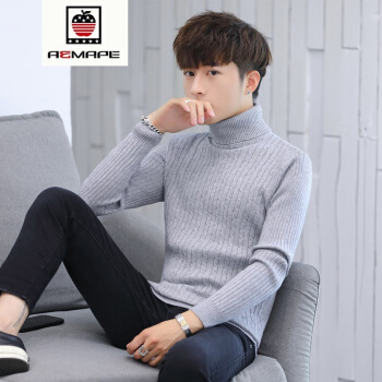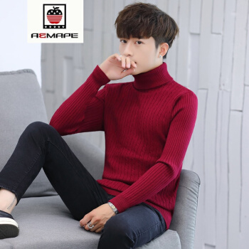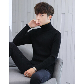 遥渠高领毛衣男秋冬季加厚韩版修身新品学生圆领针织衫外套男装 黑色 L |