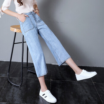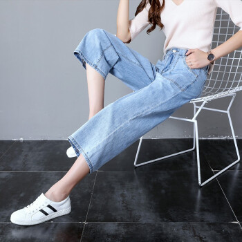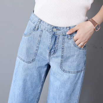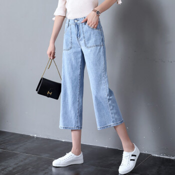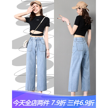 沫澜仟衣阔腿牛仔裤女夏季薄款高腰显瘦直筒垂感宽松休闲九分裤女时尚百搭八分裤子女 浅蓝八分 25码 |