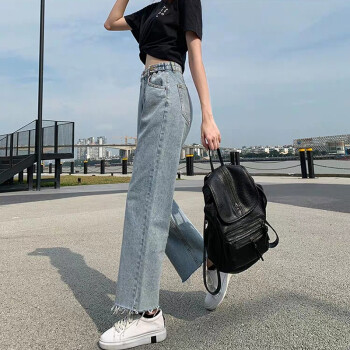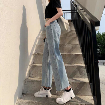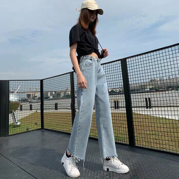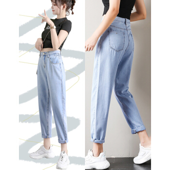 沫澜仟衣天丝牛仔裤女夏季超薄款高腰显瘦休闲百搭哈伦裤女宽松垂感老爹冰丝九分裤子女 浅蓝色【天丝面料】 S |