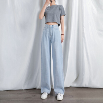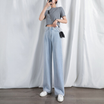 高腰阔腿裤泫雅牛仔裤女新款夏季薄款直筒宽松垂感拖地裤子 复古蓝 XXS 75-85斤 |