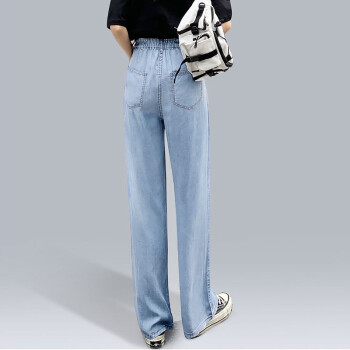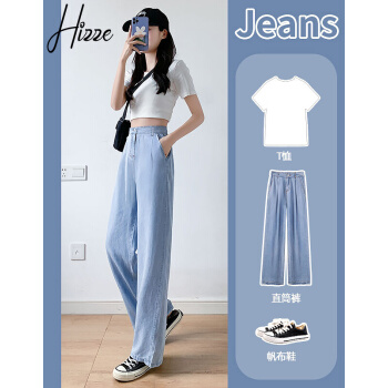 【精选女裤】Hizze天丝牛仔阔腿裤女裤子夏季新款薄款宽松百搭直筒高腰垂感冰丝超薄夏天长裤 复古蓝【拖地裤】 请拍正确尺码 |