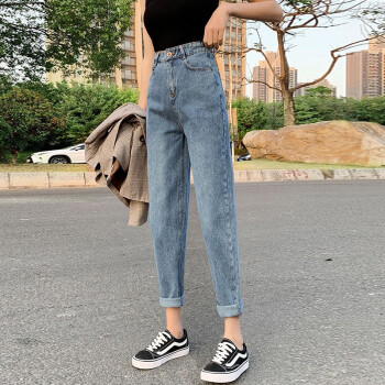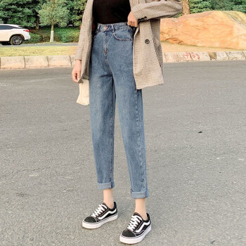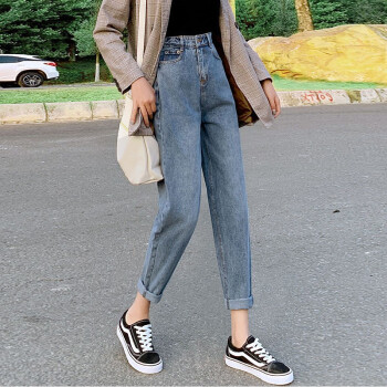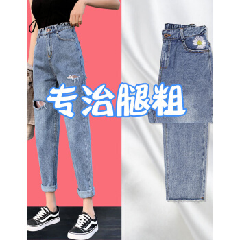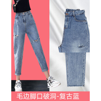【尖货精选】Hizze牛仔裤女裤夏季薄款新款直筒宽松破洞高腰显瘦老爹裤九分百搭休闲萝卜裤 复古蓝-破洞毛边 请拍正确尺码 |